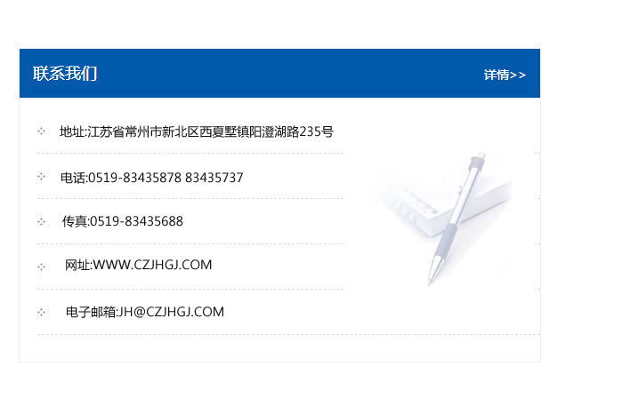 地址:常州市新北區(qū)友邦商務大廈1幢16、17層  電話:0519-85101652  傳真:0519-85112595  郵編:213022  網(wǎng)址:www_cz-jiayue_cn.ddffy.com  郵箱:xiajifengaa@163.com